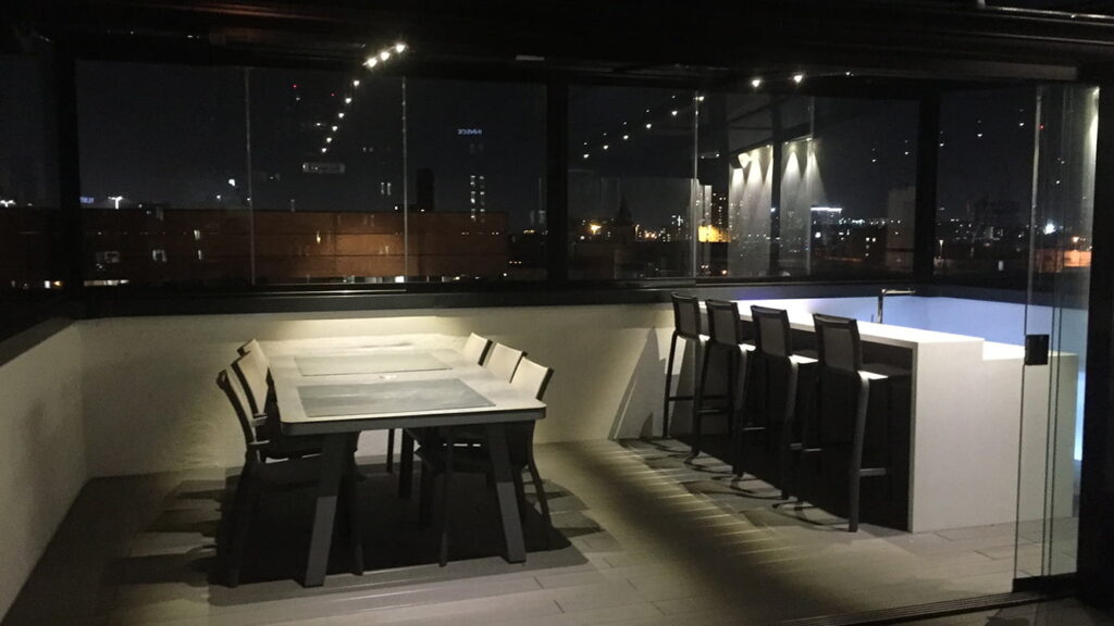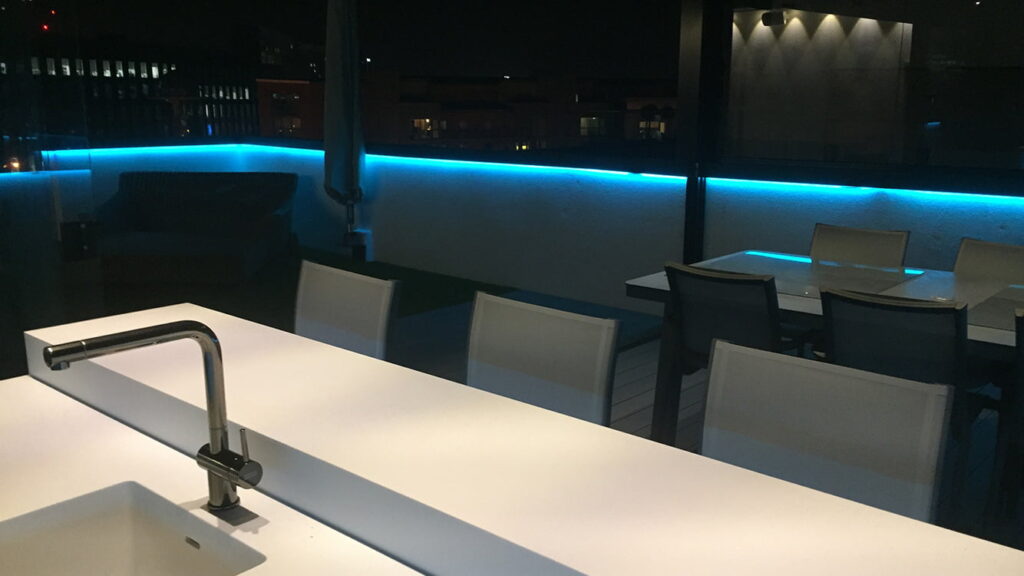 Here we have designed a lighting scheme for the inside and outside of this fabulous Manchester penthouse. The property exists over two floors, with a large roof terrace on the top floor. We have designed and installed a Rako lighting system with 28 zones of control and dimming. For extra ambience, we have installed 50 downlighters, and LED tape to give both colour change and warm white. We have also installed wall lights, pendants and lamp lights where required.