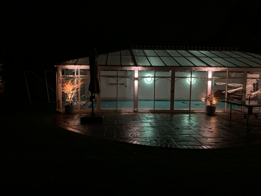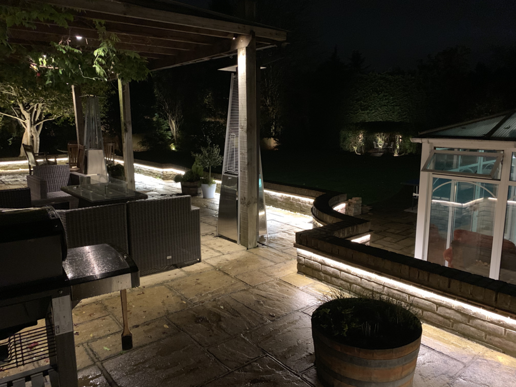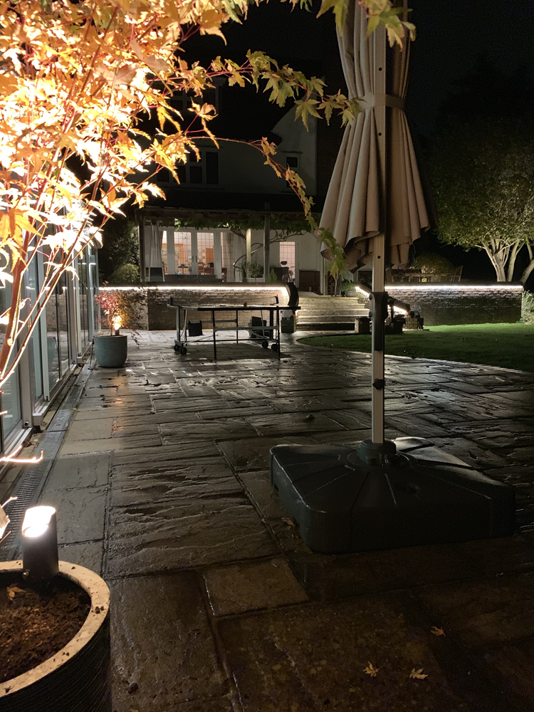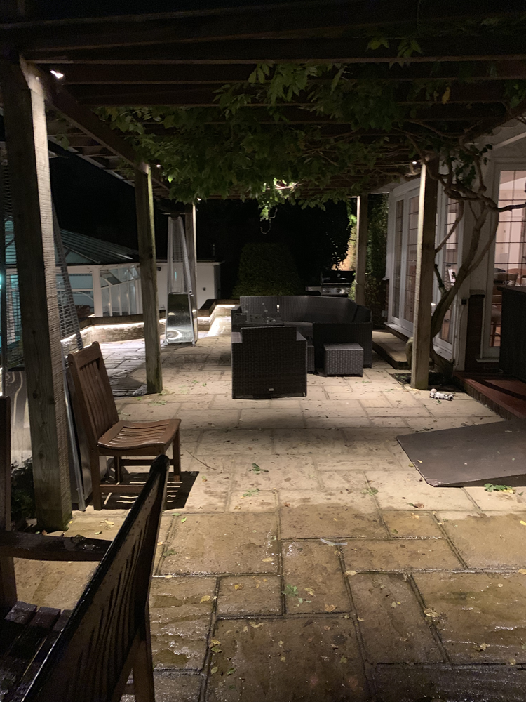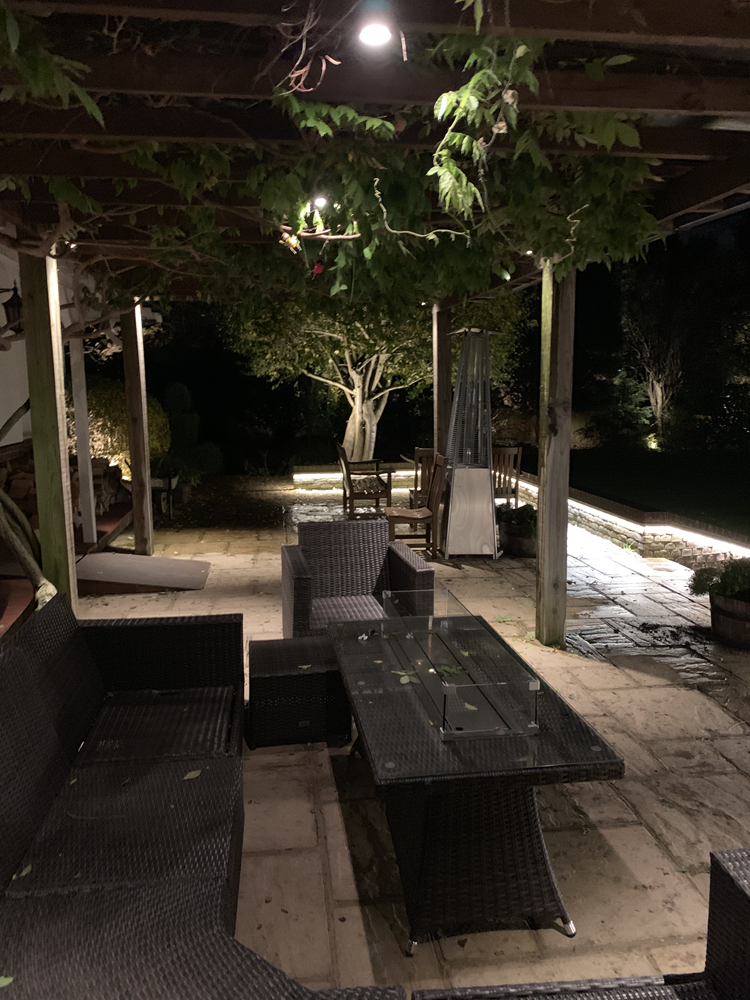 I stayed out as the sun went down and put a patio heater on and enjoyed the lights as it got dark. The effect of the lights has improved tenfold now it’s complete. I liked it before but now it’s a bit special. What you’ve done this week has pulled everything together big time.