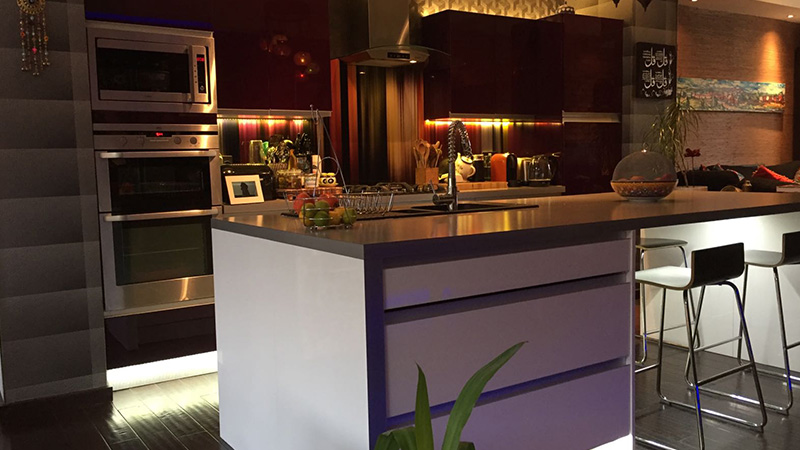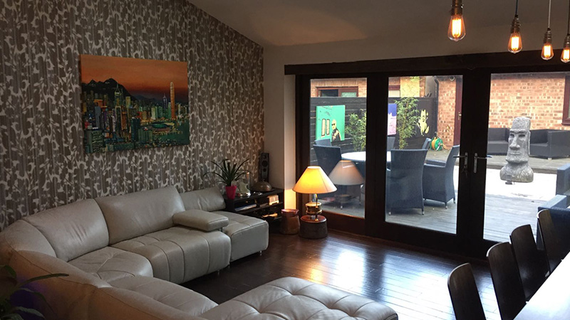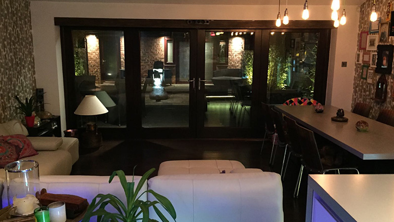 Here we designed and installed a multi room audio system, intelligent lighting system (internal and external), CCTV system, an av distribution system to all viewing points as well as a Home Cinema in the rear lounge that doubled for a cinema in the garden, with an automated awning to offer shade from the sun and the rain, for a 5 bedroom semi-detached home.