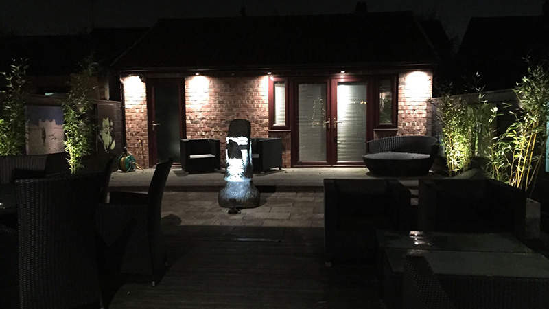 The lighting system had over 30 zones of individual lighting with on average 4 zones of lighting per room. The mixture of lighting was from recessed down lights, pendant/lamp lights where required and LED shadow lighting in warm white colour around the house and colour change in a few key areas. Externally a full garden lighting installation was installed that was controlled by the central intelligent lighting system allowing both timed, pre programmed scenes and switched control of the system. As well as a garden audio system being present in the back garden also.