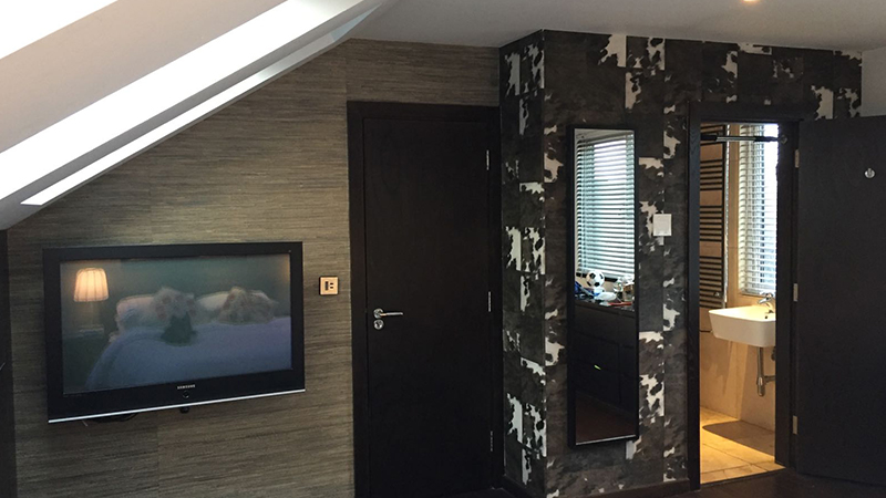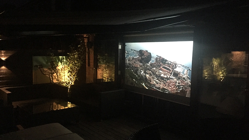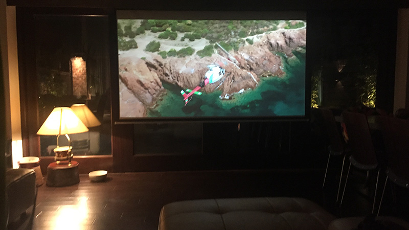 The audio system saw 5 separate zones for audio distribution using a mixture of pairs of in ceiling stereo speakers, stand alone table top units and waterproof speakers for the outdoor music and cinema installation, that could all work independently or be brought together for party modes etc.